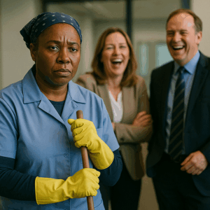 Every night, after everyone left, she cleaned the same glass doors, the same white desks, the same conference rooms where she wasn’t allowed to sit during the day.