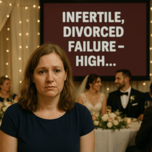 “At My Sister’s Wedding Reception, the Big Screen Suddenly Flashed My Photo with the Words: ‘Infertile, Divorced Failure — High Maintenance and Unwanted.’ Everyone Stared. I Thought My Life Was Over — Until the Truth Came Out.”