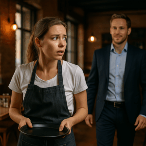 She adjusted her apron, brushed a stray lock of hair behind her ear, and pasted on the same tired smile she’d practiced every night. “Table seven’s ready,” called out her manager, Kara, tapping a notepad. “Big shot reservation. Be extra nice, okay?”