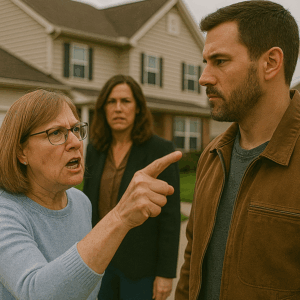 I looked up. A woman in designer sunglasses and a perfectly pressed blazer stood at the edge of my yard, arms crossed.