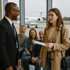Before I could process, a man in a navy uniform approached. “Ms. Evans? Your jet is ready. We’ll take your luggage.”