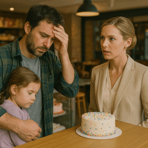 Ethan didn’t know what to say. His daughter squealed, hugging his leg. “Daddy! The cake came! The real one!”