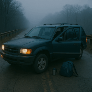 At 2:14 a.m., a truck driver spotted their Ford Explorer stopped on the bridge. Hazard lights pulsed through the mist. The driver’s door was ajar, a backpack rested on the backseat, and a thermos of coffee—still radiating warmth—sat in the cup holder.