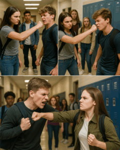 “A High School Bully Made Up His Own ‘Rules’ and Attacked the Quiet New Girl in Front of Everyone — But Within Five Seconds, She Dodged His Punch, Flipped Him Over Her Shoulder, and Left the Entire Cafeteria Frozen. What She Revealed Next Shocked the Whole School.”