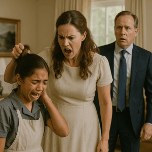 A millionaire accidentally walked in as his wife cruelly humiliated their maid’s young daughter in front of guests, dismissing her as worthless—yet what happened next shocked the entire mansion, as a hidden truth completely turned the tables.