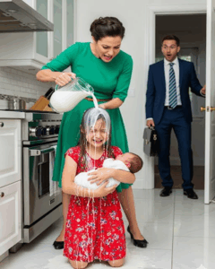 “A Millionaire Came Back From London With Gifts for His Children—But When He Opened the Door and Saw His Stepmother Wife Pouring Milk Over His Little Girl’s Head, His Furious Shout of ‘STOP!’ Sparked a Confrontation That Would Change the Family Forever.”