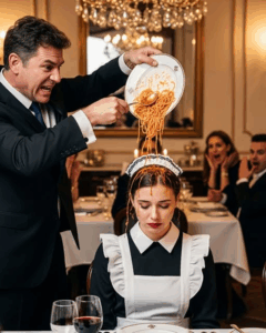 “A Powerful Businessman Mocked A Maid At A Prestigious Banquet, Pouring Pasta On Her Head To Humiliate Her — But Moments Later Something Happened That Left The Entire Ballroom In Shock As The Man Who Thought He Ruled Everything Fell To His Knees”