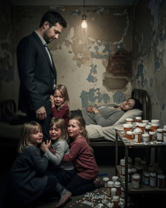 Three children stared back at him. Thin, pale, their clothes worn. Their eyes, wide with fear, locked on the imposing figure of the man who controlled their mother’s job.
