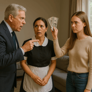 Gasps rippled through the guests. The accused—Maria, the maid who had worked for his family for over a decade—stood frozen, her face pale, her hands trembling.