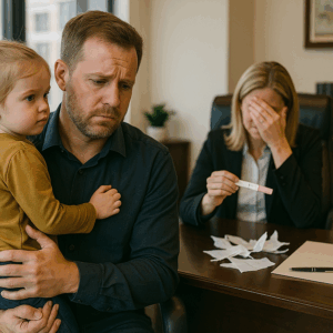 Sometimes, when I see him now — walking into the building with his wife and little boy — I think about that night he tore the pregnancy test apart, believing his world had ended.