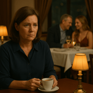 But instead, she breathed deeply and made a decision that shocked even herself. She would not storm over, she would not confront him in front of strangers. She would act in silence, but with clarity.