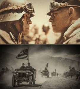 Patton stood atop a tank turret, binoculars raised, the desert wind tugging at his jacket. His forces moved like a synchronized machine—infantry advancing cleanly, tanks in perfect formation, artillery poised for rapid fire.