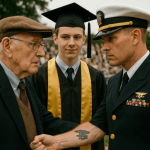 An Old Veteran Came to Watch His Grandson Graduate — But When the Navy SEAL Commander Noticed the Tattoo on…
