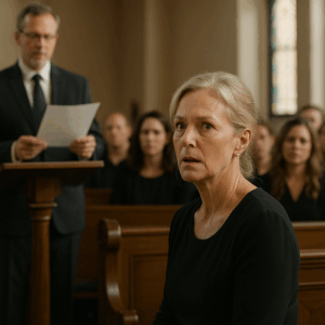 At the front sat Tina—my ex-husband Martin’s second wife—front and center, her face painted with theatrical grief, a tissue clutched tightly in her hand but conspicuously dry. Beside her were my daughters, both keeping their eyes locked forward, deliberately avoiding mine.