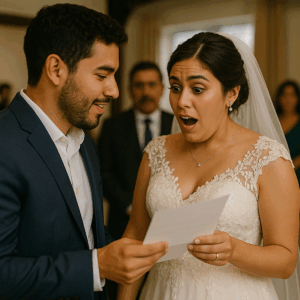 She didn’t answer. She folded the paper, slipped it back into the envelope, and walked away — right out of her own reception hall.