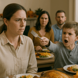 “At Thanksgiving Dinner, My Nephew Threw a Fork at Me and Said, ‘Mom Says You’re Just the Help.’ The Whole Table Went Silent — Then My Brother Tried to Laugh It Off. What Happened Next Left Every Guest Frozen as Years of Family Secrets Unraveled, and They Finally Learned the Truth About the ‘Job’ I’d Been Hiding — and Why I’d Been the One Paying for Every Holiday Dinner All Along”