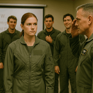 The tall pilot — the one who’d mocked her — stood up, cleared his throat, and said, “Permission to speak, Ma’am?”