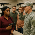 “Inside a Crowded Gun Store, Several Customers Laughed and Mocked a Black Woman Trying to Make a Purchase—But Moments Later, the Door Burst Open and a High-Ranking Military Commander Walked In, Snapped to Attention, and Saluted Her”