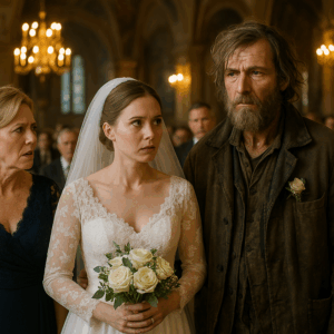 When the heavy oak doors opened, the crowd leaned forward. The groom entered in tattered clothes, his face partly shadowed beneath a hood. His steps echoed across the marble aisle. Some guests gasped; others smirked, covering laughter behind their hands.