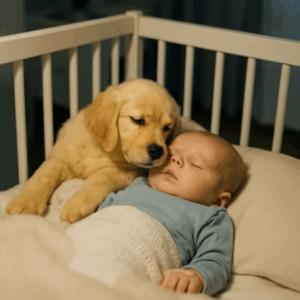 Now, he stood at the nursery door, his golden fur glowing softly in the lamplight, his eyes fixed on the crib.