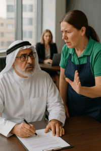 Amira was sweeping nearby when she heard Rafiq say, “Sign here, sir — and here.”