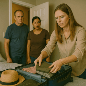 I was at my parents’ house when she walked in — tanned, smiling, suitcase rolling behind her.