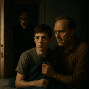 The sound had his father’s cadence, but something about it was wrong. Too cold. Too forceful. It felt less like a parent asking to enter, more like a stranger demanding control.