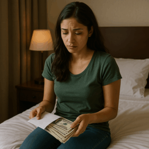 Her heart pounded. She stared at the bills, her mind racing. Was this payment? Charity? Pity? Or something darker?