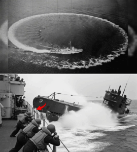 On the German ship, men were thrown off their feet as a violent shudder ran from bow to stern. On the American ship, the deck lurched, and a wall of lockers jumped sideways.