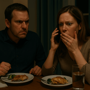 The table smelled of roasted chicken and garlic bread. Our fifteen-year-old son, Ethan, had already gone upstairs to tackle algebra homework. Across from me sat my husband, Daniel, slowly turning his fork in silence.