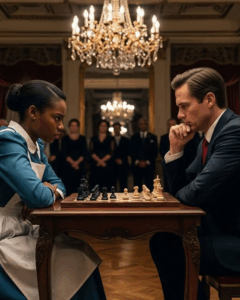He pulled the cleaning lady from her work, sat her before a chessboard, and promised $10,000 if she won. Guests laughed, mocking her uniform—until her first move revealed a truth no one could have imagined.
