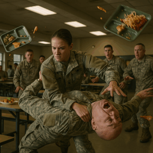 He Thought Rank Meant He Could Put His Hands on Any Enlisted Soldier in the Dining Facility, But When He Shoved the Wrong Woman, Her Reflexes Sent Trays Flying, the Argument Turned Deadly Serious, and the Entire Chain of Command Got Involved