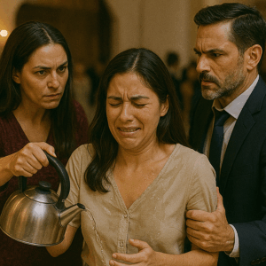 The kettle clattered to the floor. Boiling water splashed across the tiles harmlessly, away from Lena’s feet. Clara gasped, realizing what she’d nearly done — or what she’d been caught doing.