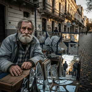 On a forgotten street in Buenos Aires, a man sold broken mirrors. People thought he was eccentric, even foolish. But those who dared to look discovered something greater: a reflection not of perfection, but of truth.