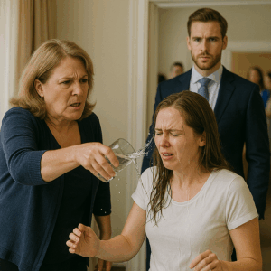 “Her Cruel Mother-in-Law Threw a Glass of Water on Her Future Daughter-in-Law in Front of the Whole Family — Laughing and Calling Her ‘Unworthy’ of Her Son, Not Knowing the Quiet, Humble Girl Was Actually the Sister of a Billionaire Who Walked In Moments Later, and What He Did Next Turned the Entire Engagement Party Into a Scene No One in That Mansion Would Ever Forget”