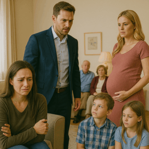 Her eyes flicked toward the woman standing beside him — young, elegant, glowing with pregnancy. Sabrina. The mistress.