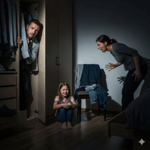 After tucking Lena into bed, he told Rachel he needed to run a quick errand. But instead of leaving, he slipped quietly into the hall closet near Lena’s room. The slats of the door gave him just enough view into the golden-lit bedroom.