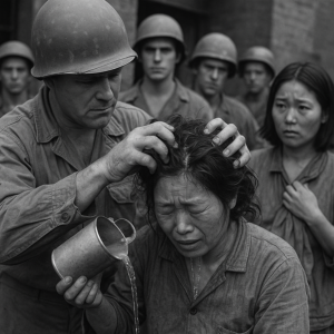A group of Japanese women stood together near a makeshift shelter, their clothes worn thin from weeks of hardship, their hair tangled by wind, weather, and circumstances none of them had chosen. They watched the American soldiers carefully but without hostility. If anything, their expressions held more confusion than fear.