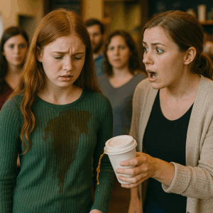 “I Accidentally Spilled Hot Tea on the Rude Girl Who Kept Cutting Everyone in Line — She Screamed at Me in Front of Everyone, But Seconds Later, What Happened Next Made the Whole Café Fall Silent, and She Ended Up Learning a Lesson She’ll Never Forget.”