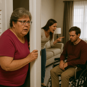 A mother came home without warning and overheard her daughter-in-law hurling cruel insults at her disabled son. The shocking words—mocking both his condition and his mother—exposed a toxic secret hidden in plain sight. What she discovered shattered her trust and changed the course of the entire family forever.