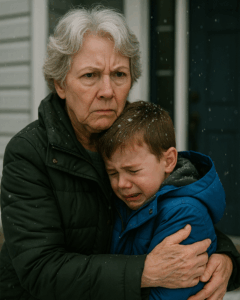 “Grandma,” he whispered. His voice was thin, broken, trembling. “Melissa said I had to wait outside… she said I was too loud while she was with the new daddy.”
