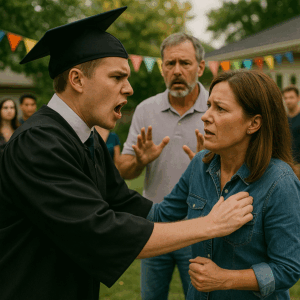 I spent a decade raising my husband’s son like my own, only for him to push me at his graduation party and tell me to stop acting like his mom—then my husband’s silence sparked an argument so serious it forced us to rebuild our family from the ground up