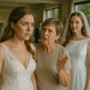 My sister, Casey, stood in the middle of the foyer like it was her runway. Her dress was bright white—whiter than mine, somehow—with tiny crystals catching the light every time she moved. It hugged her curves and flared out at the bottom. She even had her hair done in loose waves over one shoulder, the way brides in magazines pose when they’re showing off their earrings.