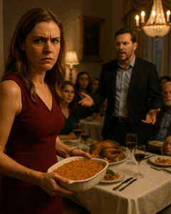 The room erupted again, voices layering mockery over mockery. Maxwell grinned, satisfied, while Thelma stood motionless by the sideboard, her tray of casserole untouched.