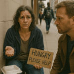“He Saw a Woman Sitting on the Street Begging for Food—But When She Turned Her Head and He Noticed the…
