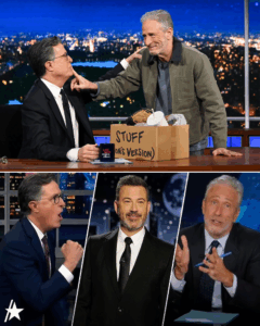 Three Titans, One Room, Endless Questions: Jon Stewart, Stephen Colbert, and Jimmy Kimmel Leave Late-Night Fans Stunned After a Secret Meeting That Experts Say Could Upend Television Forever, Triggering Rumors of Hidden Agendas, Explosive Collaborations, and a Mysterious Plan That Has Industry Veterans Whispering About the Most Dangerous Gamble in Comedy