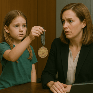 The girl stepped forward, her voice trembling but determined. “Ma’am, this belongs to my dad. He told me… if anything ever happened to him, I should bring it here.”