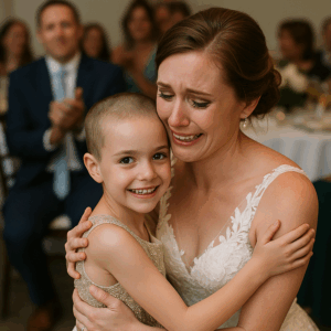My 8-year-old stepdaughter did something strange on my wedding day. She insisted on wearing a thick winter hat all day, hiding her beautiful long hair. In the middle of the reception, she walked up to me, took off the hat, and showed me the real reason why.