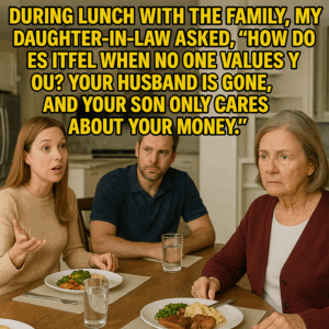 “My Daughter-in-Law Mocked Me at the Table, Saying I Was Lonely in My Big House and That My Son Only Wanted My Money. Laughter Followed, Until I Calmly Said, ‘Let’s See How You Manage Without My Support.’ The Room Went From Cruel Jokes to Utter Silence in an Instant.”