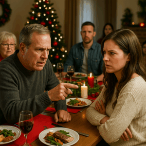 For us, it started with the smell of roasted turkey, cinnamon candles, and my dad clearing his throat at the head of the table like he was about to give a holiday toast. My sister Emma’s kids were flicking peas at each other. Bing Crosby was murmuring on the speakers. The tree lights reflected in the window, making the snow outside look almost fake, like we were living in one of those carefully staged store window displays.